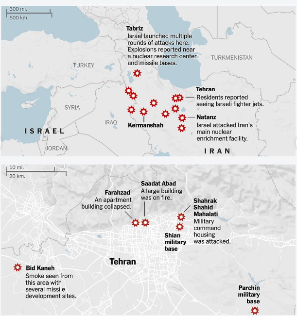 Israel’s strikes targeted some of Iran’s most important nuclear facilities, marking a dramatic escalation between two of the most powerful militaries in the Middle East and raising fears of an all-out war.